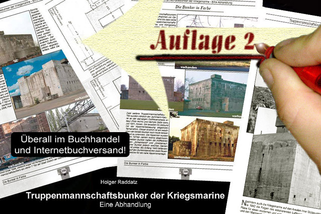 Diese Ausarbeitung in Buchform ist in der korrigierten und aktualisierten 2. Auflage überall im Buchhandel und im Internetbuchversand erhältlich. In der Ausarbeitung werden auf 328 DIN A4-Seiten sämtliche Truppenmannschaftsbunker der Kriegsmarine detailliert im Text und mit hunderten, teils vierfarbigen Bildern vorgestellt.